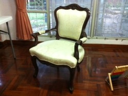 เก้าอี้เล็ก 4 ตัว มีที่วางแขน กว้าง 56 ซม. สูง 95 ซม. เก้าอื้ยาว 1 ตัว มีที่วางแขน กว้าง 175 ซม. สูง 95 ซม. โต๊ะกลางไม้ 1 ตัว โครงสร้างไม้สัก เบาะหุ้มผ้า