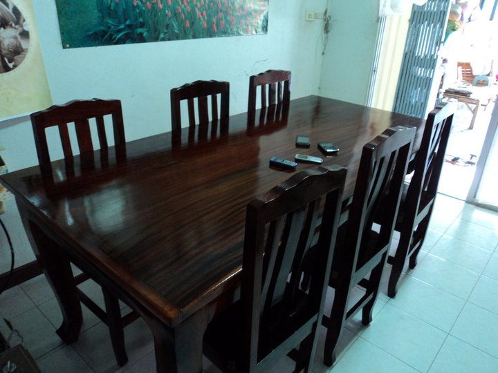 (นครสวรรค์) ขายโต๊ะทานข้าวไม้มะค่าโมง เป็นไม้แผ่นเดียว พร้อมเก้าอี้อีก 6 ตัว