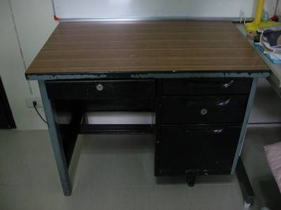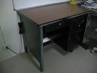 ขายโต๊ะทำงานเหล็ก ผิวด้านบนเป็นผิวไม้ สภาพดี แต่สีไม่ค่อยสวย ขาย 500 บาท ติดต่ออ้วน 0855076919