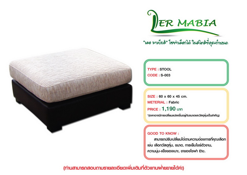 ท่านสามารถเข้าไปดูรายละเอียดเพิ่มได้ที่ www.facebook.com/sofa.le.meubles หรือทาง www.lermabia.com