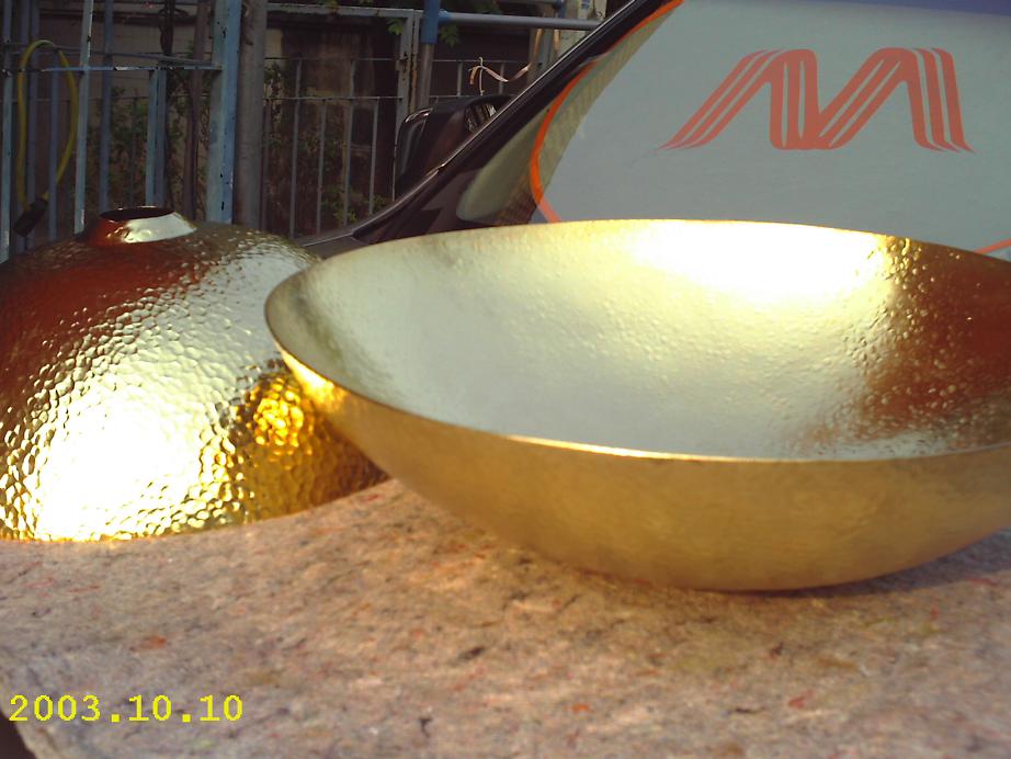 งานในประเภทนี้ ได้แก่ ขันน้ำ, ถาด และพาน สีทอง