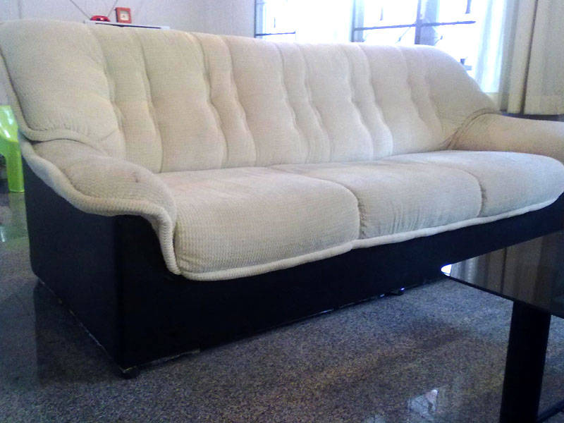 ขายโซฟาชุดพร้อมโต๊ะกลาง เนื่องจากต้องการซื้อชุดใหม่ที่เล็กกว่า ทั้งชุดประกอบด้วย โซฟายาว 1 ตัว โซฟาอาร์มแชร์ 2 ตัว โต๊ะกลาง 1 ตัว - โซฟาบุด้วยสักหลาด ข้างหลังบุหนังพีวีซี คำอธิบายรูป - โต๊ะกลางเป็นเหล็กทำสีดำ ท๊อปเป็นกระจกสีชา 1. ชุดโซฟามองมุมกว้างเรียบหรู 2. ดูอาร์มแชร์ตัวใหญ่กันชัด ๆ 3. โซฟาตัวยาวนั่งได้หลายคน 4. ด้านหลังของโซฟาเป็นหนังพีวีซีสีดำ 5. โต๊ะกลางด้านบนเป็นกระจกสีชา 6. ตำหนิด้านข้างอาร์มแชร์