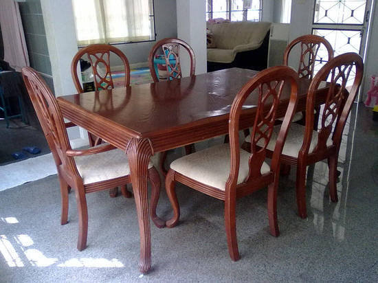 ขายโต๊ะทานอาหารขนาด 8 ที่นั่ง สามารถถอดชิ้นส่วนตรงกลางเพื่อให้กลายเป็นโต๊ะทานอาหารขนาด 6 ที่นั่งได้ เป็นไม้แท้ทั้งตัว สภาพ 90% เป็นเฟอร์นิเจอร์ Import ต้องการขายเพราะต้องการชุดที่เล็กกว่า