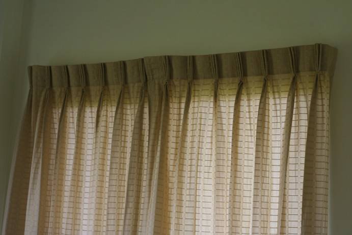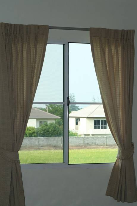 1. ม่านหน้าต่างสีเบจ ขนาดราวยาว 1.25 m. ความสูงของผ้าม่าน 1.65 m. 1 คู่