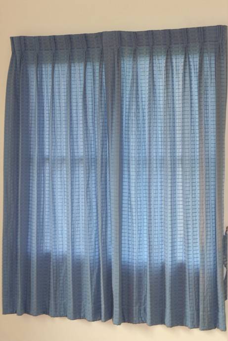 3. ม่านหน้าต่างสีฟ้าคราม ขนาดราวยาว 1.25 m. ความสูงของผ้าม่าน 1.65 m. 1 คู่