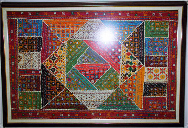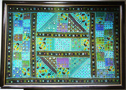 เป็นผ้า india เข้า frame สวยงาม มี 2 frame 1) สีชมพู มีกระจกด้านปิดด้านหน้า 2) สีเขียว ไม่มีกระจกติดด้านหน้า ขนาด ประมาณ 60 * 40 นิ้ว ราคา Frame ละ 5,000 บาท