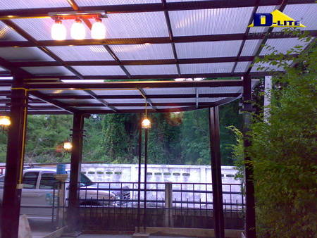 ความสามารถในการให้แสงสว่างแบบโปร่งแสง และกันUV ได้ความร้อนที่ส่งลงมา ก็ขึ้นอยู่กับสีที่เลือก หากเลือกสีเข้มก็ร้อนน้อยกว่าสีอ่อนความสามารถในการดัดโค้ง ก็เป็นไปตามรูปทรงของโครงที่เจ้าของบ้านชื่นชอบ หลังคา D-Lite ดีไลท์