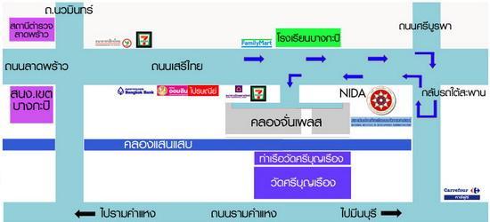 ทำเลดีมาก ติดถนนใหญ่ เดินทางสะดวก เชื่อมต่อได้หลายทางอยู่ตรงสี่แยกนิด้า - เชื่อมต่อถนนลาดพร้าว - ถนนศรีนครินทร์ - ถนนนวมินทร์ - ถนนรามคำแหง - ถนนเสรีไทย - ถนนวงแหวนรอบนอกตะวันออก