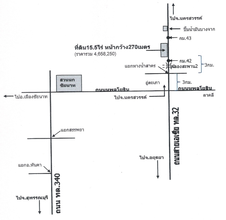 ขายที่ดินถูกกว่าประเมิน 15-2-11ไร่หน้ากว้าง 270เมตร ลึกประมาณ 85เมตร ติดถ.เอเชีย(ทล.32)ต.วัดโคกอ.มโนรมย์จ.ชัยนาท อยู่ระหว่างแยกหางน้ำสาคร(3กม.)กับปั๊มน้ำมันบางจาก(กม.142) เหมาะทำที่พักรถ/ ปั๊มน้ำมัน-แก๊ส /ร้านอาหาร/บริการรถต่างๆ พงศ์ไชย 087-8256951