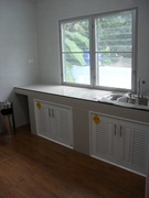 - ช่องเก็บของด้านล่างครัวปูนเทปูนเต็มเสมอพื้นเพื่อให้ง่ายต่อการทำความสะอาด ใช้ชุดปิดหน้าบานแบบพลาสติกอย่างดีไม่เหลืองตลอดอายุการใช้งาน