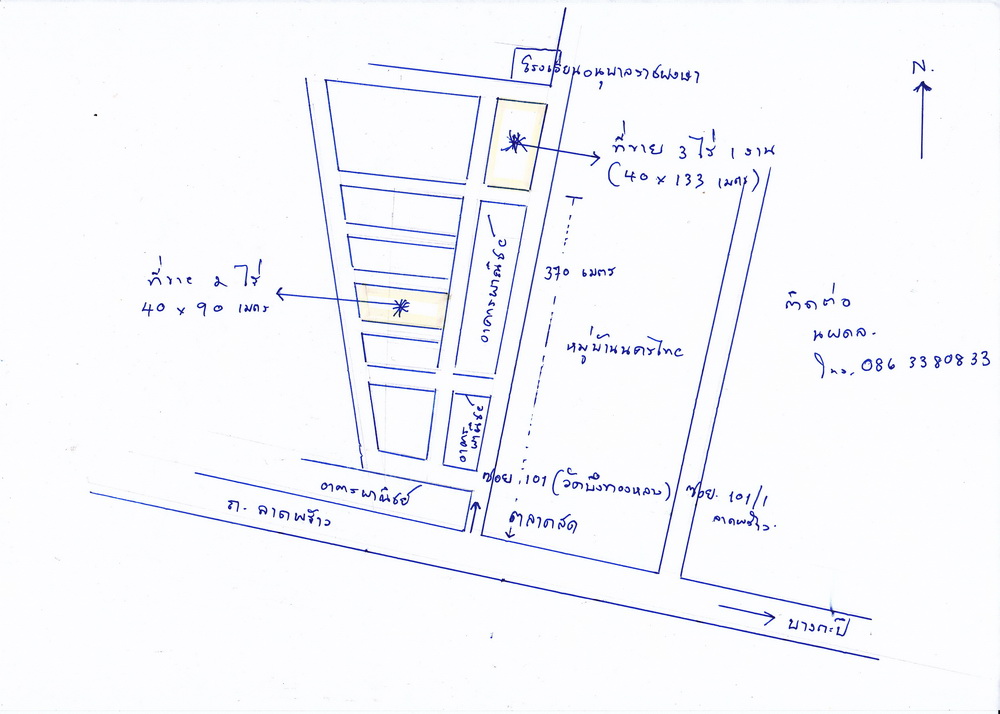 ขายที่ดิน 3 ไร่ ติดซอยลาดพร้าว 101 ราคา 120,000 บาท/ตร.วา และ 2 ไร่ ราคา 55,000 บาท/ตร.วา