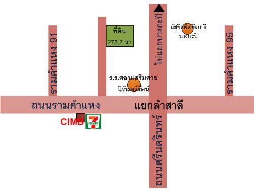ขายที่ดินเปล่า 275.2 วา ใกล้แยกลำสาลี ถ.ศรีนครินทร์