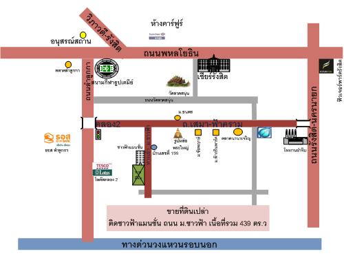 ขายที่ดินเปล่า 439 วา ม.ชาวฟ้า ถนนเสมาฟ้าคราม ลำลูกกา คลอง 2 ติดถนนถมแล้ว สวย ใกล้ตลาดนานาเจริญ โลตัสคลอง 2 ทางเข้าออกสะดวก เข้าได้ 2 ทาง ด้านหน้าหมู่บ้านชาวฟ้า หรือเข้าด้านหลังหมู่บ้าน มีรถประจำทางผ่าน ย่านชุมชน หายาก เหมาะจะปลูกบ้านหรือทำอพาร์ทเมนท์ให้เช่า สนใจติดต่อ คุณแทนพงษ์ 088-525-6655 หรือ 088-529-5959