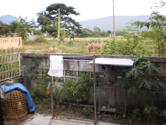 2. หลังบ้านปลูกไม้ผล เช่น ส้มโอ ชมพู่ ทุเรียน ขนุน น้อยหน่า เงาะ เลี้ยงไก่ไข่ เปิดประูตูมองเห็นภูเขา