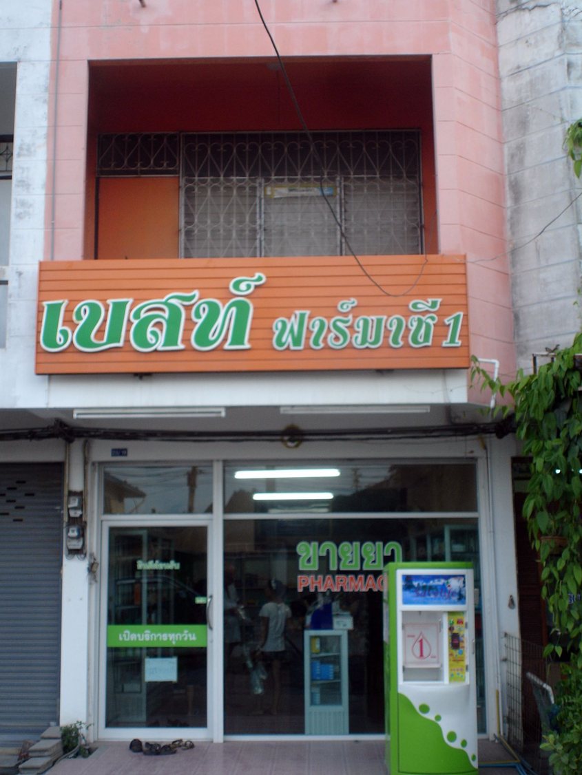 ปัจจุบันด้านล่างตกแต่งกั้นห้องกระจกให้เช่าทำร้านขายยาอยู่ เก็บค่าเช่าได้เดือนละ 5,000 บาท
