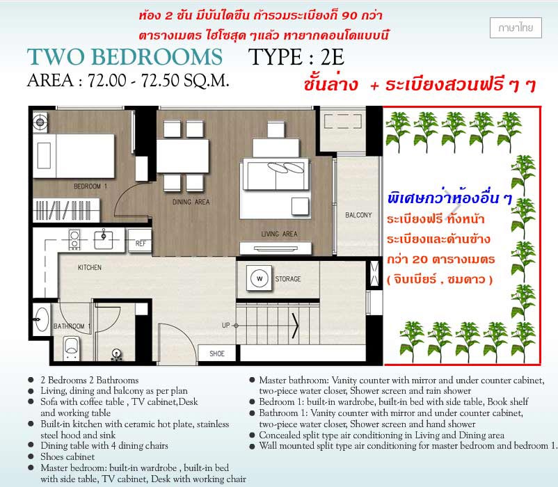 ( แต่จริงๆคุณได้ ขนาด 72.5 ตารางเมตร + สวนส่วนตัวขนาดใหญ่กว่า 16 ตารางเมตร รวมๆเกือบ 90 ตารางเมตรแล้ว )