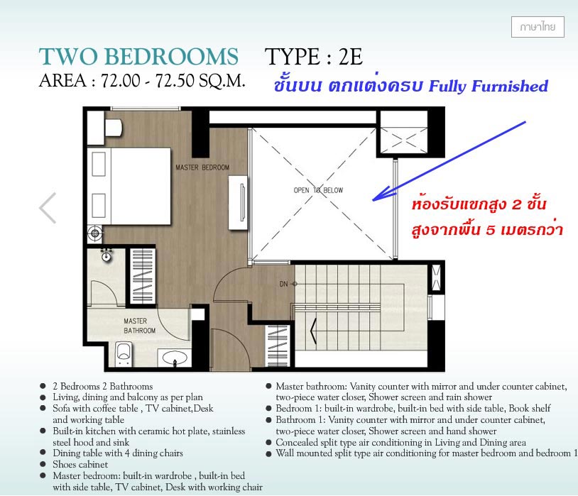 Fully Furnished ทั้งห้อง ราคา Presale ได้ส่วนลดมา 30,000 ห้องนี้พิเศษคือเป็น Duplex แบบ 2 ชั้น ชั้นล่างคือชั้น 8 ประมาณ 40 ตารางเมตร ชั้นบนคือชั้น 9 ประมาณ 32 ตารางเมตร แถมสวนส่วนตัวสุดไฮโซฟรีเกือบ 16 ตารางเมตร รวมพื้นที่ใช้สอย 90 กว่าตารางเมตร แต่แสนสิริไม่คิดพื้นที่สวน เป็นห้อง Vip ครับ คิดราคาขายจาก 72.5 ตารางเมตร หรือ ฟรีสวนนั่นเอง