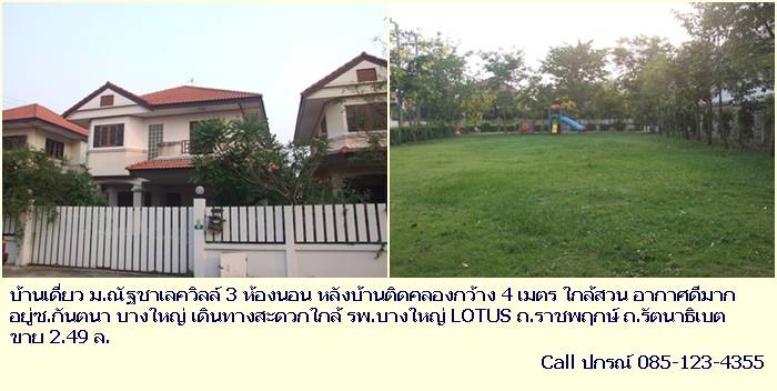 ขายบ้านเดี่ยว ม.ณัฐชาเลควิลล์ ซ.กันตนา บางใหญ่ 64วา หลังติดคลอง ขายถูก