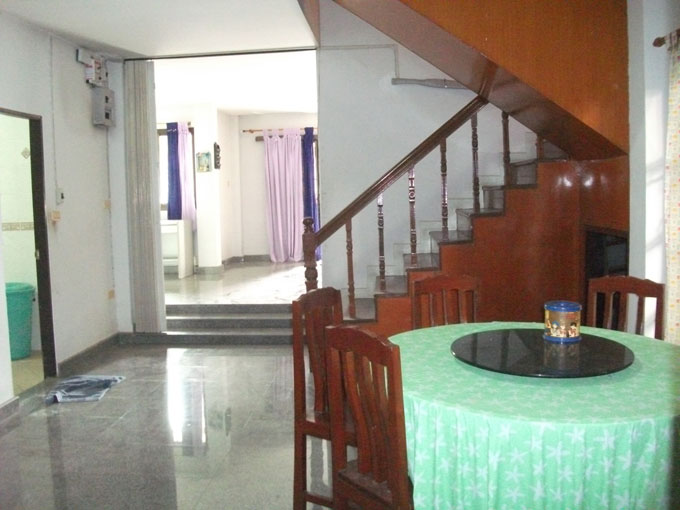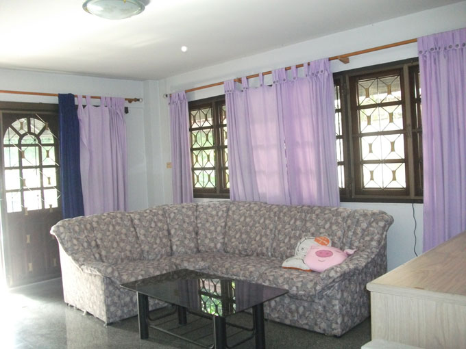 ชั้นล่างพื้นหินอ่อนทั้งส่วนรับแขกและส่วนทานอาหาร ใส่บานเลื้อนอลูมิเนียมเข้า-ออกครัวนอก ระเบียงบนด้านหลังปูกระเบื้องและใส่กันสาดหลังคารวมถึงกันสาดหลังคาด้านข้างบ้าน ห้องรับแขกใส่ฉากPVC