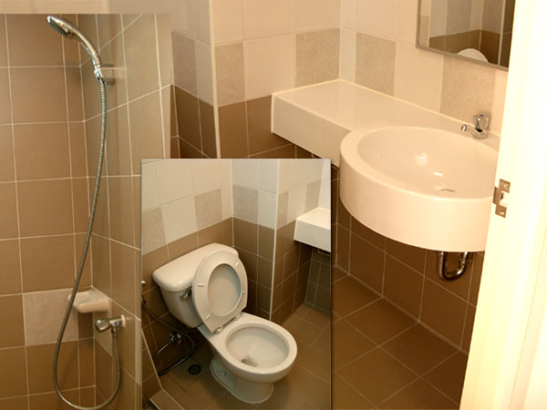 พื้นลามิเนท พร้อมแอร์ Mitsubishi 12000 BTU เครื่องทำน้ำอุ่น Panasonic สุขภัณฑ์ AmricanStandard