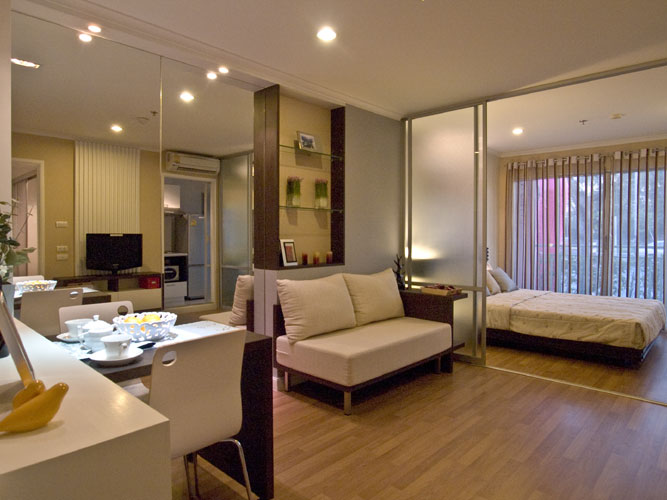 - เฟอร์นิเจอร์ลอยมี โซฟา , โต๊ะรับแขก , เตียงนอน , โต๊ะหัวเตียง - ติดวอลเปเปอร์ - ม่านปรับแสง