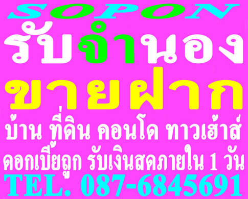 รับจำนอง ขายฝาก ไถ่ถอน บ้าน ที่ดิน ทาวเฮ้าส์ คอนโดมิเนียม ตึกแถว อาคารพาณิชย์ อพาร์ทเม้นท์ และอสังหาริมทรัพย์อื่น ๆ ทั่วกรุงเทพฯและปริมณฑล นายทุนทำเอง ไม่ผ่านนายหน้า อนุมัติได้ทันที