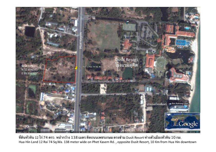 ต้องการขายที่ดินเปล่าสวย 12 ไร่ ติดถนนใหญ่ตรงข้าม รร.ดุสิตรีสอร์ท หัวหิน
