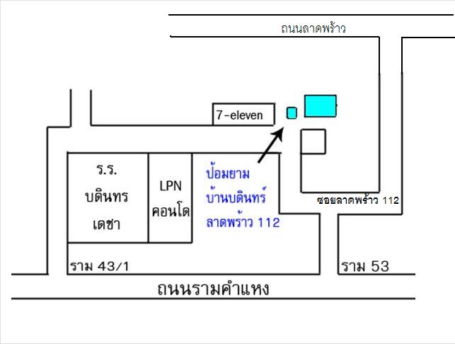 สถานที่ : ตั้งอยู่ในซอยลาดพร้าว112 ติดกับโรงเรียนบดิทร์เดชา เดินทางสะดวกสบาย ใกล้เลียบทางด่วนเอกมัย-รามอินทรา ห้างสรรพสินค้า Big C ย่านออฟฟิตศรีวรา