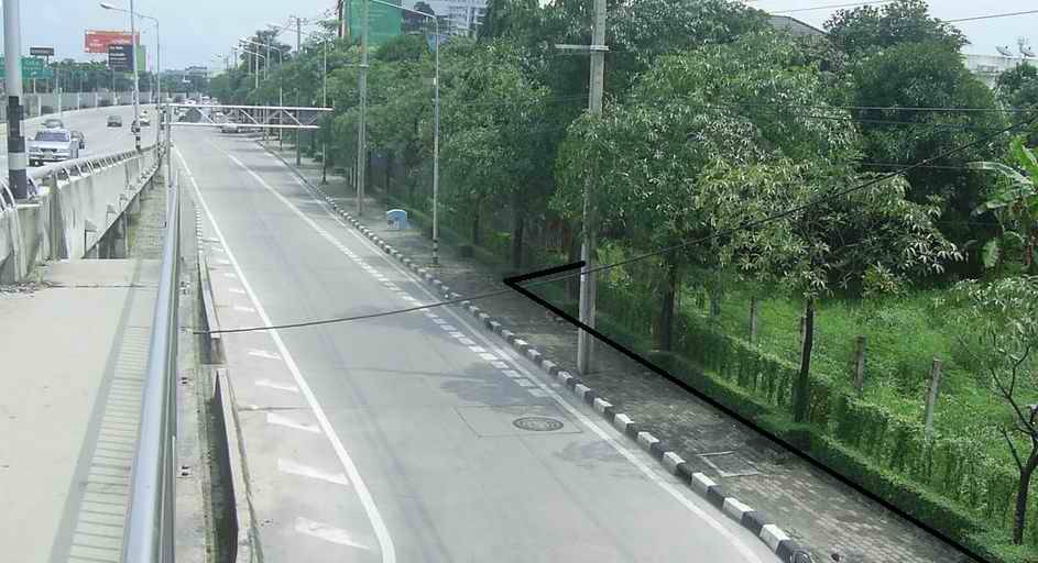 ที่ดินรูปเกือบสีึ่เหลี่ยมครับ หน้าติดถนนเกษตร-นวมินทร์ ประมาณ 35 เมตร