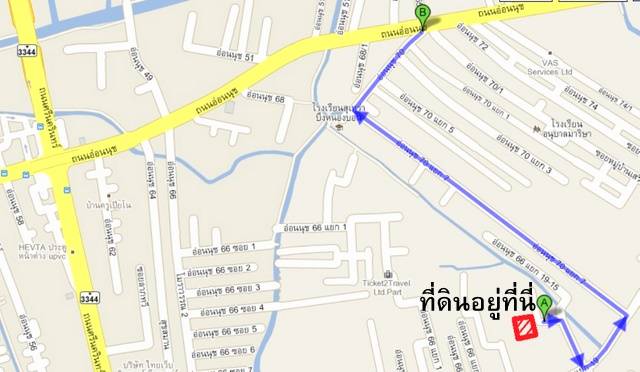 ที่ตั้ง:เข้าซอย อ่อนนุช70แยกและเลี้ยวซ้ายที่แยก7ตรงมาประมาณ1.3กม.และ เลี้ยวขวา400เมตรจะเห็นป้ายซอย 19-15ทางด้านขวามือ เลี้ยวเข้ามาแล้วอ่านป้ายลูกศรเลย *ดูหมุดบนแผนที่ประกอบได้เลยครับ ปักบนที่ดินเลย*