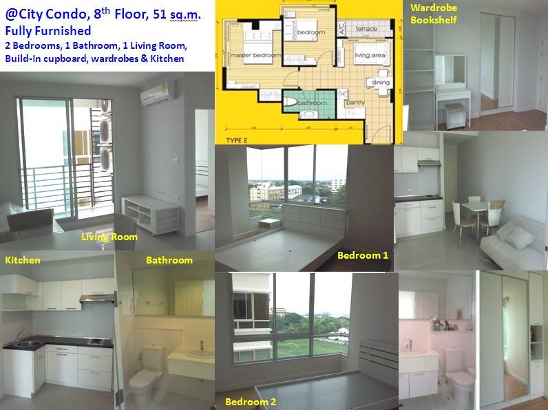 ***For Rent: New Fully Furnished @City Condo on Sukhumvit 101/1, ~600 to BTS, 51 sq.m., 2 Bed room, Build-In Furniture. Available for Weekly, Monthly, Bi-Annually and Annually***