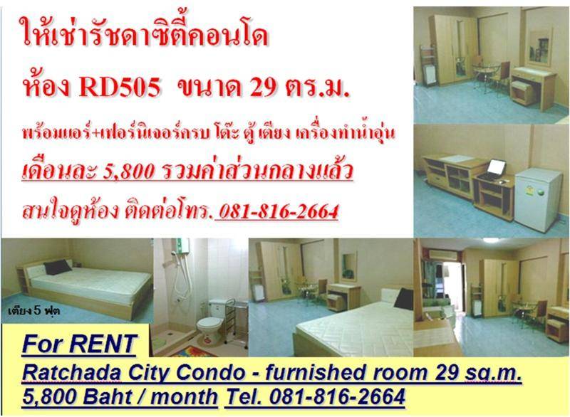 ***** แค่เดือนละ 5,800/เดือน คอนโดพร้อมเฟอร์นิเจอร์ใกล้รถไฟฟ้าใต้ดินห้วยขวาง 300 เมตร ถ.รัชดาภิเษก-รัชดาซิตี้คอนโด สิ่งอำนวยความสะดวกครบครัน (Condo For RENT 5,800THB, only 300 m.from Huaykwang MRT Station, Ratchadapisek Rd., New fully furnished) ***