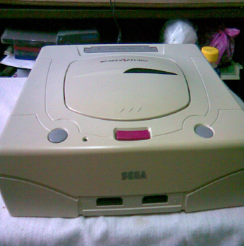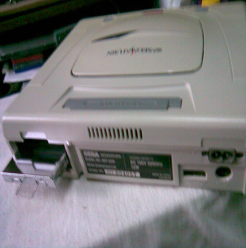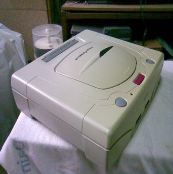 SATURN สีขาวเหลืองนิดหน่อย หัวอ่านยังดีอ่านได้หมด+1จอย+สาย AV..ไฟ.110.VOLT+แปลงแล้ว+เกมส์นิดหน่อย