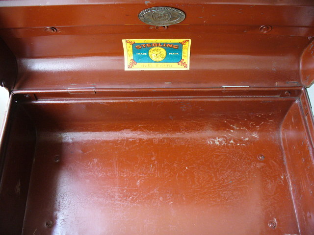 หีบเหล็กโบราณ สไตล์ Railway Steamer Trunk ขนาดประมาณ กว้าง 30xยาว56xสูง 22ซม. สภาพ ไม่ผ่านการซ่อมหรือปรับสภาพ มีสนิมบนผิวแต่ไม่มีผุหรือรั่ว ลายและตราประทับบนผิวเดิมยังพอมองเห็น อุปกรณ์ใช้ได้ ภายในสวย ตราและฉลากสภาพสมบูรณ์ รอยทางขวาด้านในเป็นรอยคราบจากกระดาษที่เคยปูรองครับ ราคา 4000 บาท+ค่าส่งตามจริงครับ