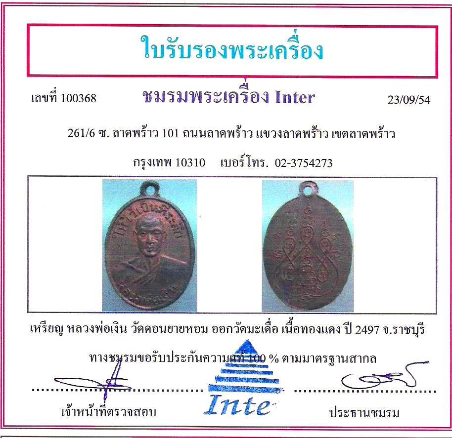 @@@@ เหรียญ หลวงพ่อเงิน วัดดอนยายหอม ออกวัดมะเดื่อ ราชบุรี ปี 2497 หายาก สภาพสวยแชมป์ รับประกันความแท้100 % พร้อมบัตรรับรอง @@@@