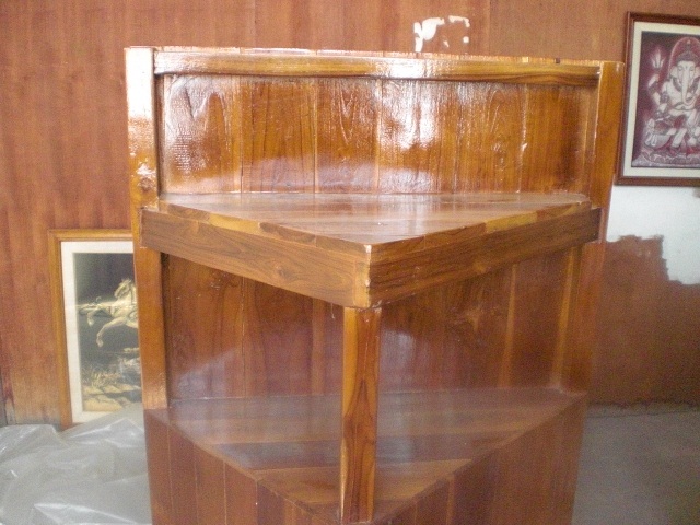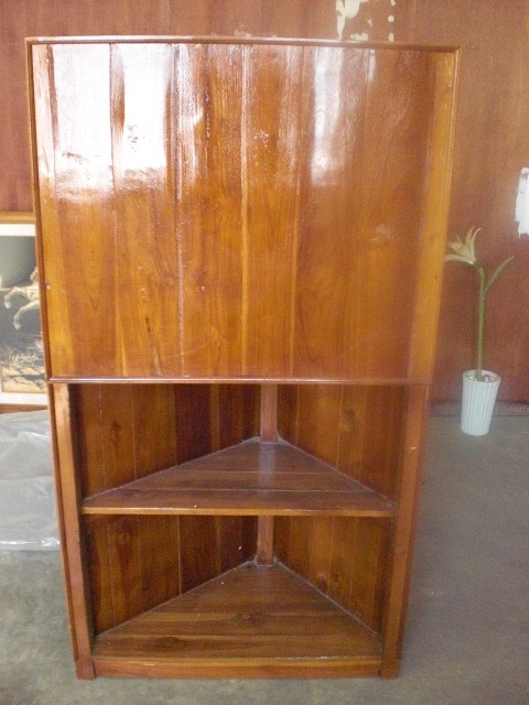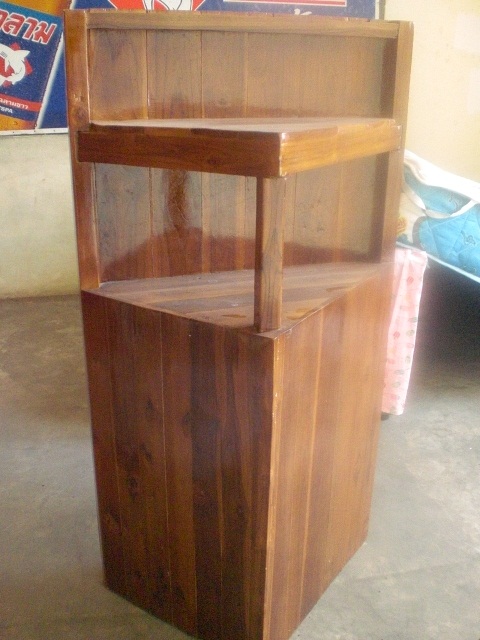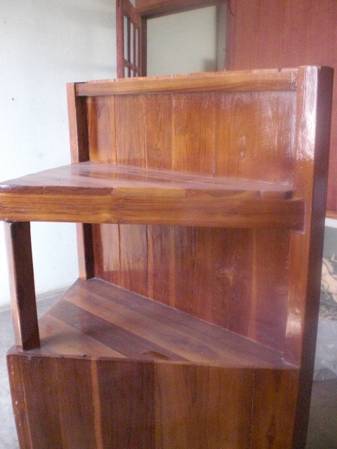 ชั้นวางของเข้ามุม เป็นไม้สักทั้งหมด วางสิ่งของโชว์ หน้าทั้งด่าน หน้า หลัง ขนาด 0.75 * 1.35 เมตร