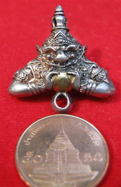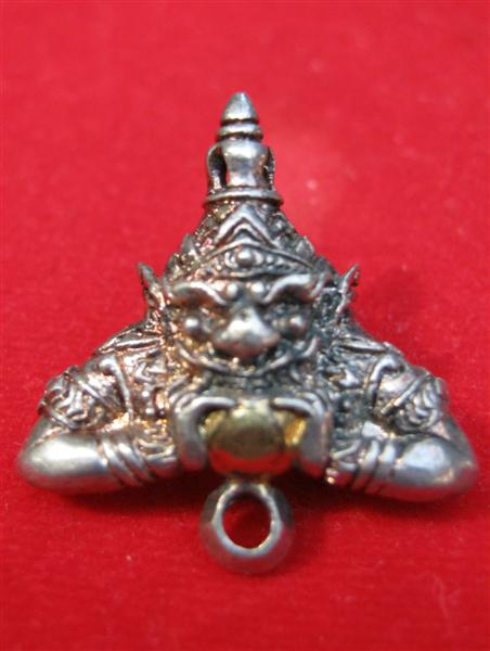 เป็นราหูอมจันทร์เนื้อเงินจากนครศรีธรรมราช ผู้สร้างได้นำเข้าร่วมพิธีพุทธาภิเษกที่วัดมหาธาตุ จ.นครศรีธรรมราชเมื่อปี 2530 เด่นมากทางเมตตา แคล้วคลาด และโชคลาภ กันคุณไสย ยาสั่ง และภยันตรายต่างๆอันเป็นเอกลักษณ์พิเศษของราหูอมจันทร์ ด้านหลังมีห่วงใช้คล้องสร้อยได้ สภาพสวยมาก