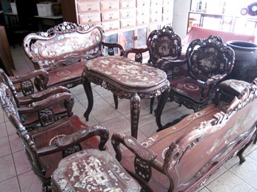 -เฟอร์นิเจอร์ไม้สักเก่า ชุดมุก ตู้โชว์ ชุดรับแขก โต๊ะ เตียง