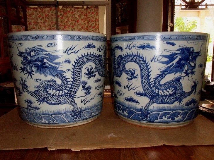 - กระถางต้นไม้ลายคราม(ญี่ปุ่น) ลายมังกรด้นเมฆ ขนาดปากกว้าง 11 นิ้ว สูง 9 นิ้ว ขอบปากบิ่น 1 จุด นอกนั้นสมบูรณ์ ราคาไม่แพงครับ