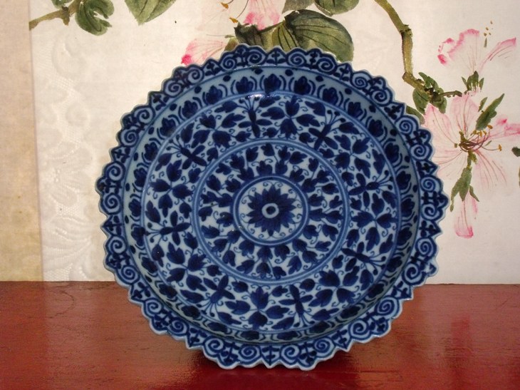 - จานเชิงลายครามลายไทย ขนาดใหญ่ กว้าง 9.25 นิ้ว มีเส้นใสด้านหลังยาวประมาณ 1 นิ้วแต่มองแทบไม่เห็น และมีร่อยขอบที่ผิวเคลือบเล็กๆ 2-3 จุด นอกนั้นสวยสมบูรณ์ครับ