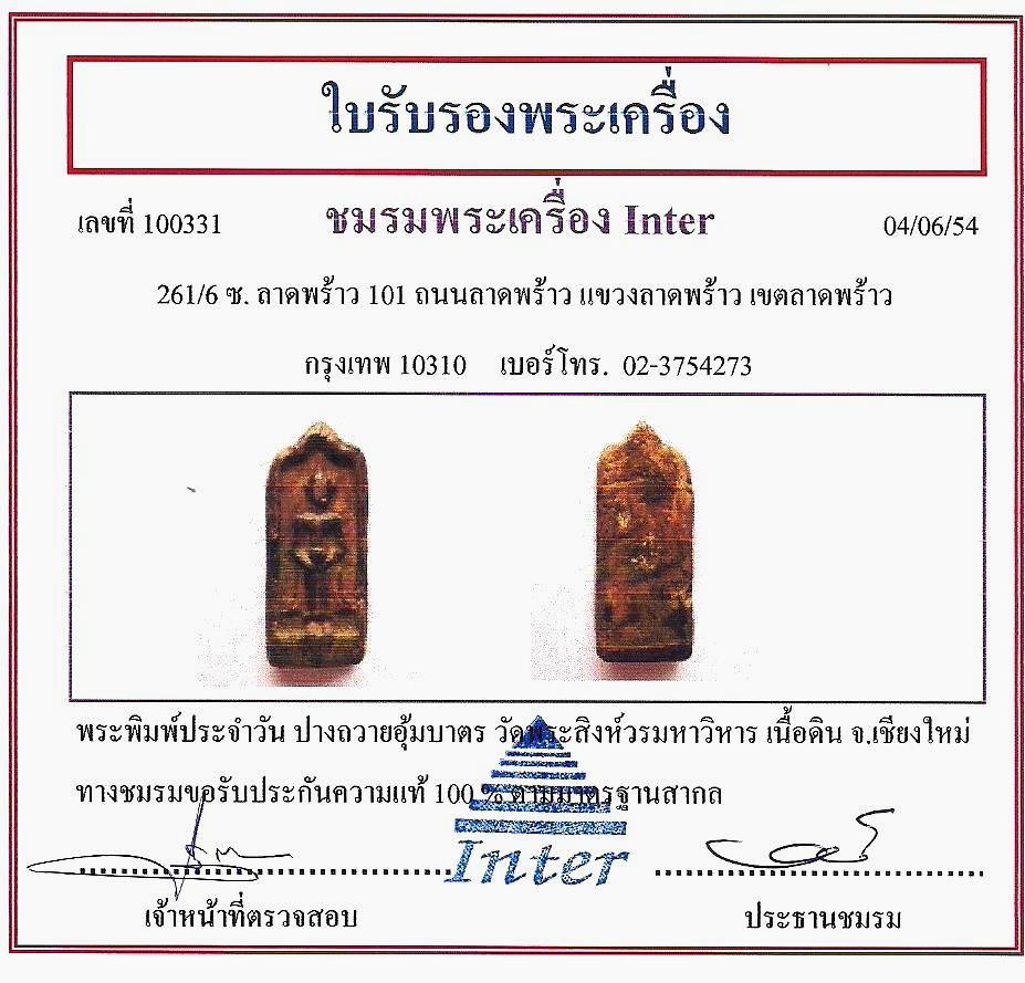 &&&& พระพิมพ์ประจำวัน ปางถวายอุ้มบาตร วัดพระสิงห์วรมหาวิหาร อ.เมือง จ.เชียงใหม่ ปลุกเสกโดยหลวงพ่อจาด วัดบางกระเบา จ.ปราจีนบุรี จัดสร้างปี พ.ศ. 2484 สภาพสวย หายากมาก รับประกันความแท้100% พร้อมบัตรรับรอง &&&&