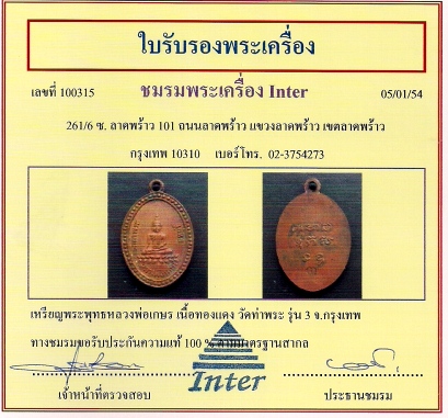 &&&& เหรียญพระพุทธหลวงพ่อเกษร วัดท่าพระ รุ่น 3 ประกอบพิธีปลุกเสกใหญ่ สภาพสวย รับประกันความแท้100% พร้อมบัตรรับรอง &&&&