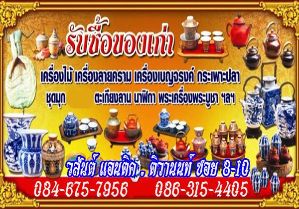 เรียนท่าน ที่เคารพ ร้าน วสันต์ แอนติค ติวานนท์ซอย 10-12 รับเช่าพระ รับซื้อของเก่าโบราณ ลายคราม เบญจรงค์ เครื่องเงิน ชุดน้ำชา ป้านชาจีน มี 3 สาขาเปิดบริการรับซื้อถึงบ้านท่านครับ ขอบคุณครับ