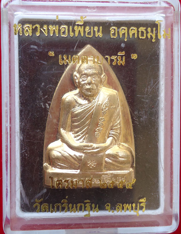 เหรียญปั๊มเตารีด หลังรอยนิ้วมือ เนื้อทองผสมปลอกลูกปืน ไตรมาส ปี 54 หลวงพ่อเพี้ยน วัดเกริ่นกฐิน จ.ลพบุรี สภาพสวยมากเดิมๆจากวัด (รูปแทนครับ)