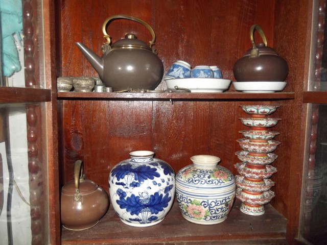 ปั้นชาจีน เก่า ๆ พร้อมโถพังเคยเก่า ๆโถเขียนสี จานเชิง เครื่องเงิน