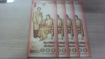 ((เริ่มต้นต่ำกว่าราคาจองครับ))แบงค์ที่ระลึก100บาท ในหลวงคู่พระราชนี เรียง4ใบ พระราชินีพระชนมายุ72พรรษา หายากมาก สวยมาก ขายไม่แพง