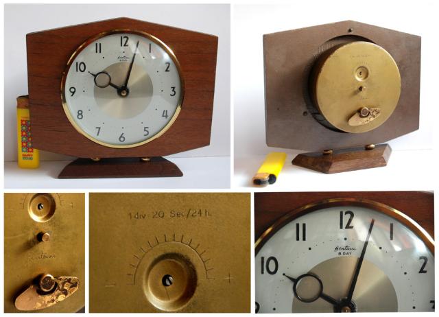 K387.นาฬิกาไขลานตั้งโต๊ะ Bentima เดิน 8 วัน กระจกหน้ากลมนูน เดินดีปกติสภาพสวยตามรูป Made in France ราคา 2200 บาท