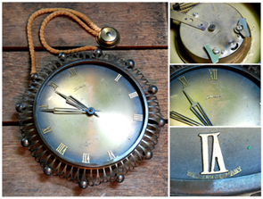 K398.ขายนาฬิกาไขลานแขวน ATLANTA 2 ลาน 2 ค้อน 2 เสียงนิ้งหน่อง ตีบอกเวลาทุกครึ่งชั่วโมง เพราะดีครับ "GERMAN FLOWER CLOCK" ดีไซน์เก๋ๆบอดี้ทองเหลืองหนักๆ Western Germany ขนาด 10.5 x 22.5 น. ราคา 6,800 บาท (หลักเวลาหลุด 2 ที่)
