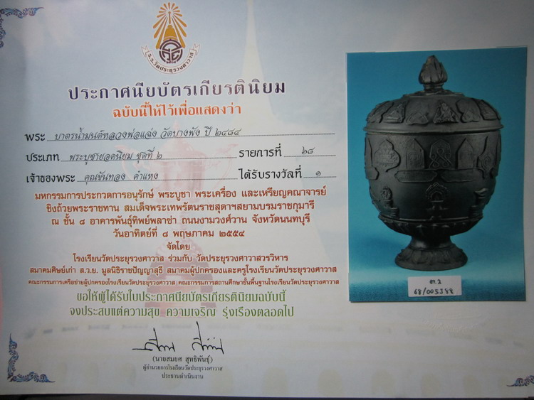 บาตรน้ำมนต์ หลวงพ่อแฉ่ง วัดบางพัง 2484 + ที่ 1 งานพันทิพย์ 8/5/54