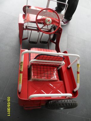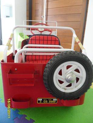 สีแดง ใส่ถ่านตรงพวงมาลัย จะมีเสียงแตร มีกระติกน้ำด้านหลัง ตัวถังเป็นเหล็กทั้งคัน